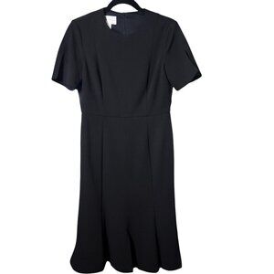 Donna Morgan Dress Black Crew Neck Short Sleeve Fit Flare Midi Women's Size 6