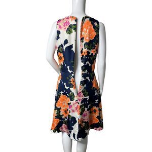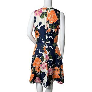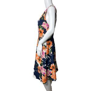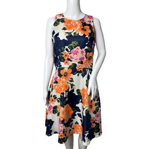 Donna Morgan Dress Women 6 Navy Orange Floral Flower Fit & Flare Colorful Preppy