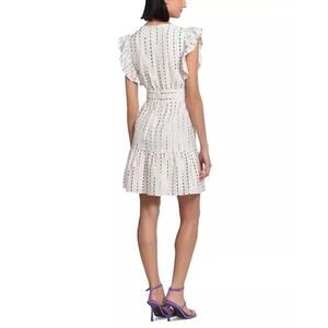 Donna Morgan Embroidered White Flutter-Sleeve Two-Tier V-Neck Mini Dress 10 NWOT