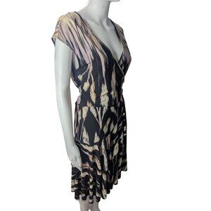 Donna Morgan Faux Wrap Dress Womens Sz 8 Abstract Print Ruffles Colorful Artsy