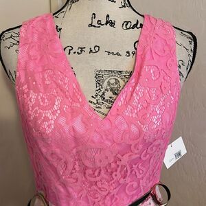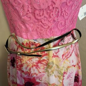 Donna Morgan Fit & Flare V-Neck Pink Lace Mixed Media Multi Floral Print Dress. Brand new with tags, size 6, lined, zipper closure on the back.