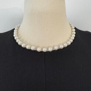 - High neck embellished with white faux pearls