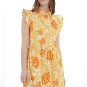 Gorgeous floral maxi dress by Donna Morgan. This dress screams spring and is perfect to wear to any outdoor special events and activities. It features a very nice jewel neckline and ruffle detailing throughout.