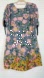 Elegant dress featuring vibrant pink and yellow flowers on a blue base. Ideal for stylish outings. This would be a great garden party dress.