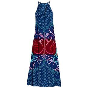 Donna Morgan Geometric Sleeveless Bohemian Halter Maxi Dress Size 12 Date Night