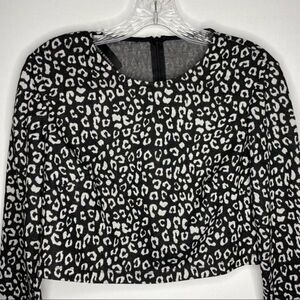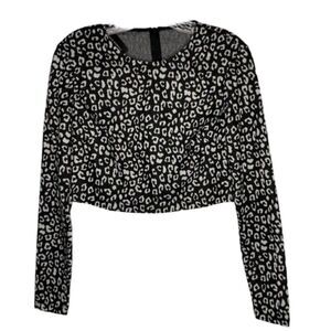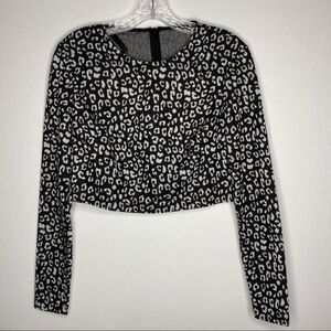 Donna Morgan Gray Black Long Sleeve Animal Leopard Cheetah Print Crop Top 6. In excellent used condition. One side of brand tag is loose.