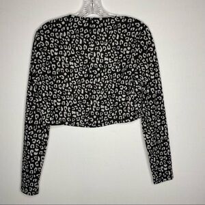 Donna Morgan Gray Black Long Sleeve Animal Leopard Cheetah Print Crop Top 6