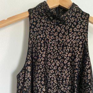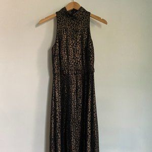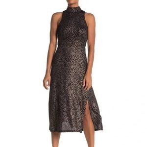 Donna Morgan Halter Leopard Dress Black/Gold/Silver w/ Slit