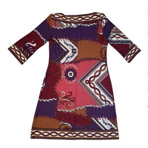 Donna Morgan Midi Sheath Stretchy Dress 3/4 sleeves Red Pink Purple Sz 10 Medium