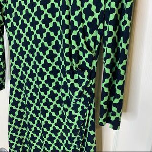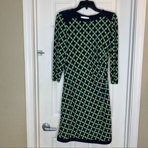 Donna Morgan Navy and Green Geometric Print Dress Size 6
