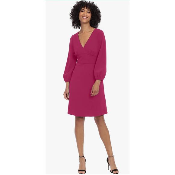 Donna Morgan New Womens Long Sleeve V Neck Fit and Flare Dress Hot Pink 4 Preppy