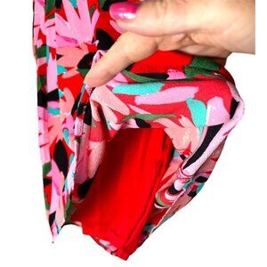 Donna Morgan Pink Floral Mock Neck Long Sleeves Crepe Shift Dress Sz 16 New
