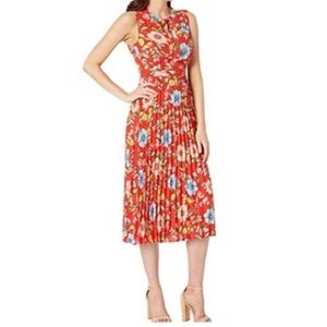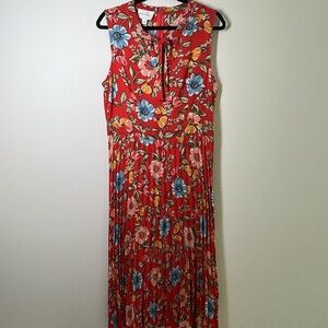 Donna Morgan Red Floral Pleated Midi Dress | Modest & Feminine | Size 14
