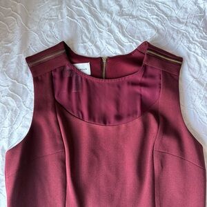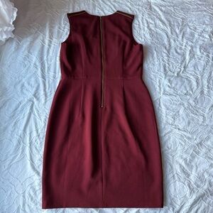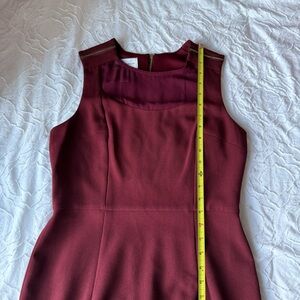 Donna Morgan Rich Burgundy Midi Dress Gold Zipper Detail and Mesh Neckline