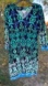 * The dress features a beautiful abstract pattern in green, blue, and black, with a V neckline and 3/4 sleeves.