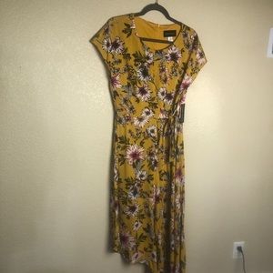 Donna Morgan Side Twist Asymmetrical Hem goldenrod Floral dress size 12 NWT