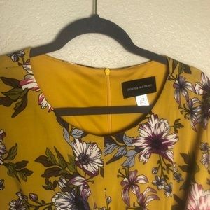 Excellent 4 season basic by leading dressmaker, Donna Morgan. Gorgeous floral on yellow back. Cap sleeves