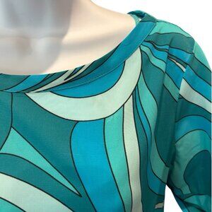 Donna Morgan Size 6 Swirl Print Dress | Turquoise Teal Blue | Belted Psychedelic