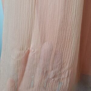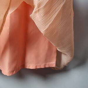 Floaty and elegant, this Donna Morgan strapless maxi dress is crafted in a soft peach chiffon with a fully lined interior. The ruched bodice flatters the bust, and the flowing skirt adds graceful movement. Perfect for weddings, bridesmaids, prom, or any special occasion.