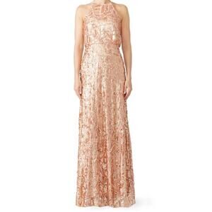 Donna Morgan Tiffany Sequin Maxi Dress 0 XS Rose Gold Halter Neck Cocktail Party