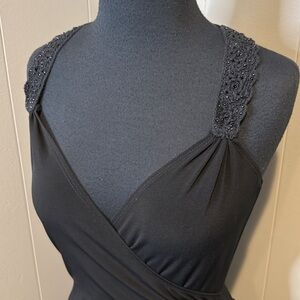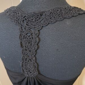 Donna Morgan Women’s 6 Midi Dress Straps Asymmetrical Dress Embroidered Beaded