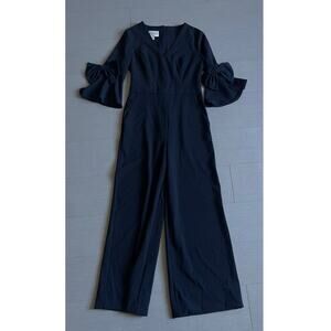 Donna Morgan Women's Black V Neck Jumpsuit with Bell Sleeve