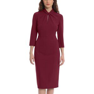 Donna Morgan Women's Stretch Crepe 3/4 Sleeve Twisted Neckline Sheath Dress