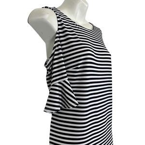 Donna Morgan Women's Striped Bell Half Sleeve Cold Shoulder Jersey Knit Dress 6