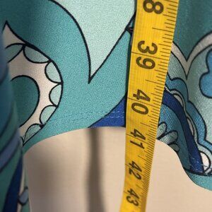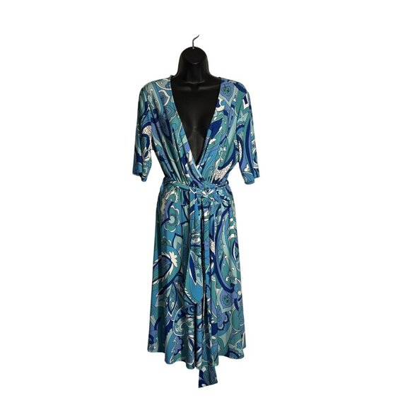 Donna Morgan Wrap Dress Blue Abstract Print Size 14 Polyester/Spandex Made In US
