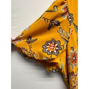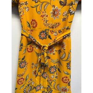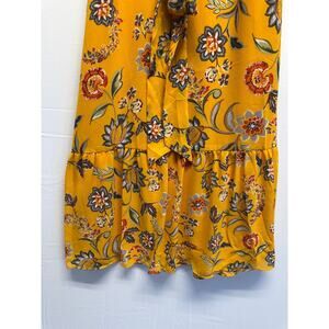 Donna Morgan Yellow Floral Puff Sleeve Midi Dress Size 6