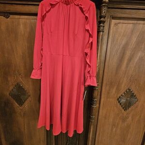 Donna Morgan for Maggy - Ruffle Long Sleeve A-Line Midi Dress