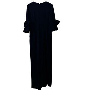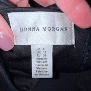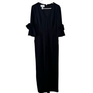 This Donna Morgan navy jumpsuit is a chic and comfortable addition to any wardrobe. The bow sleeve detail adds a touch of elegance, making it perfect for both casual and dressy occasions. It is in excellent used condition and comes from a smoke-free home. Grab it now to elevate your style effortlessly!