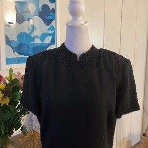Donna Morgan size 12 sequin mandarin neck sequin black button back dress