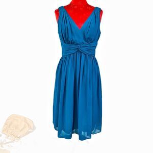 Donna Morgan size 6 Teal Blue Silk Chiffon Cocktail Party Dress - a gorgeous flowing romantic design - sleeveless with a ruched empire waist and v-neck. Back zipper - fully lined - a beautiful goddess style. Gently worn - no flaws - just stunning!