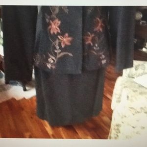 Fully lined jacket 3 snap w embroidery size chest 18" sleeve 24" length 25 skirt 26 waist length 21 embroidery is rust & green