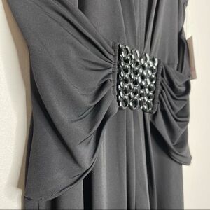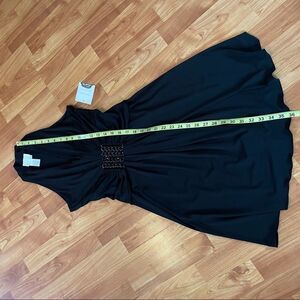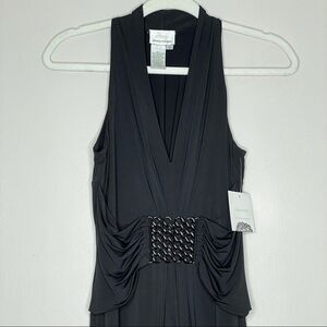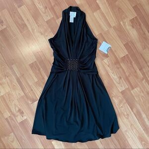 Donna Morgan || NWT black mini dress stretchy sleeveless vneck with cute waist faux belt buckle