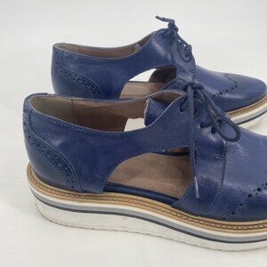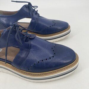 Donna Piu Size 40 Navy Derby Lace-Up Leather Cut Out Sneaker Shoes Handmade