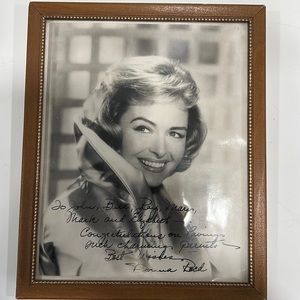 This is a signed photo by Donna Reed. In the original frame. Has lots of her writing including: “To John, Bill, Ray, Mary, Mark, and Elizabeth - Congratulations on having such charming parents - Best Wishes, Donna Reed”