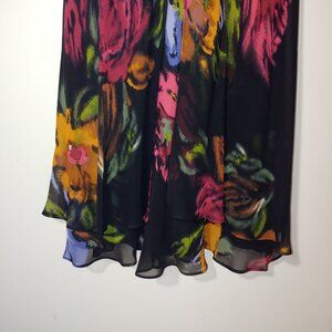 Donna Ricco 100% Silk Sleeveless Floral V-Neck Cocktail Dress Size 8P Black