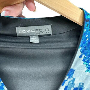 Donna Ricco 14 blue green abstract print sleeveless v-neck maxi dress