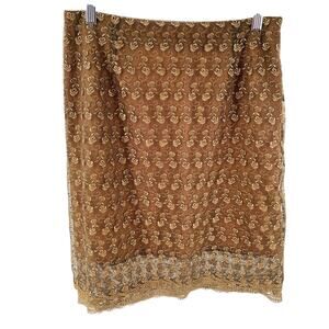 Donna Ricco 90s Gold Embroidered Floral Lace Dressy Pencil Mini Skirt 10