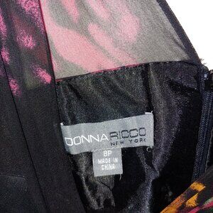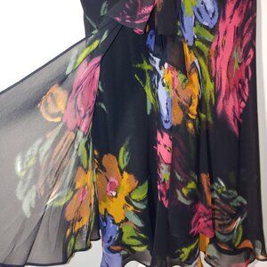 Donna Ricco Black Floral Chiffon Midi Cocktail Babydoll Dress Size 8P