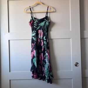 Donna Ricco Black and Pink Floral Asymmetrical Dress