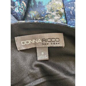 Donna Ricco Blue Brocade Fit & Flare Cocktail Dress, Sleeveless Women's Size 8