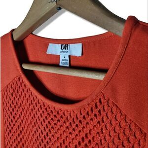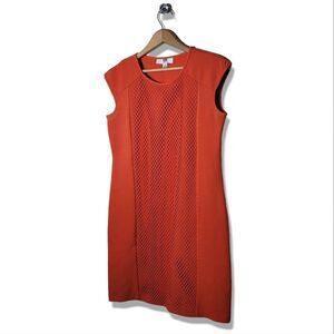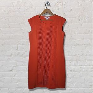 Donna Ricco Collection Orange Cap-Sleeve Fishnet Overlay Detail Sheath Dress;