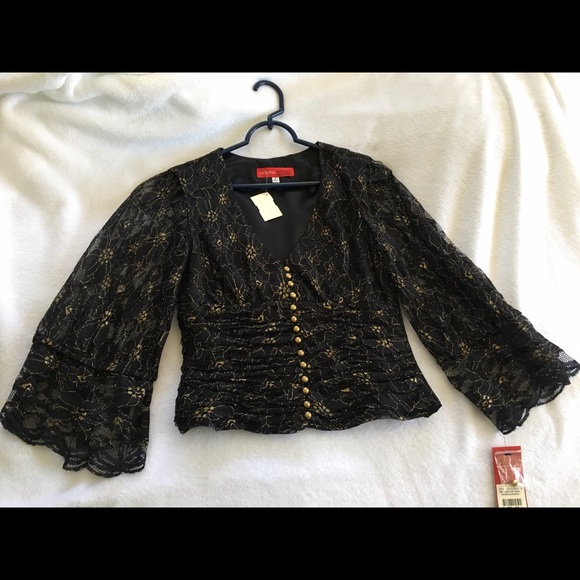 Never worn! Beautiful design with zipper on the side. Still has all tags! Absolutely no issues with it. Smoke free household.
