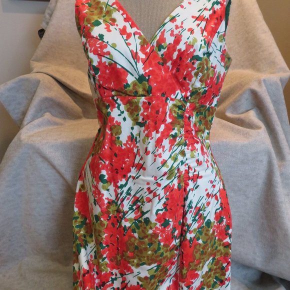 Size 10 Donna Ricco dress in like new condition. Has an empress waist with slight rucheing below bust and zipper in back. The length of dress from just below empress waist is 28 inches.
