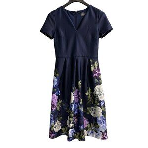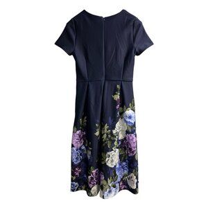 Donna Ricco Dress Women 6 Blue Scuba Knit Floral ALine Midi Office Church Easter