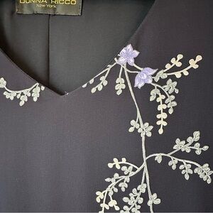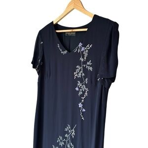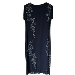 Donna Ricco Elegant Navy Blue Floral Maxi Dress Gown, 14