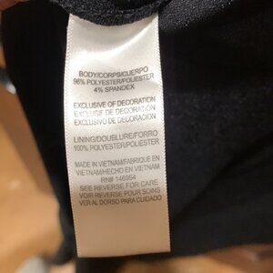 Sleeveless jumpsuit, scoop neck, zippered back, darted bust, functional pockets on each side of hip, lined bodice, wide leg, pleated left shoulder with beaded inlay strip, NWT.